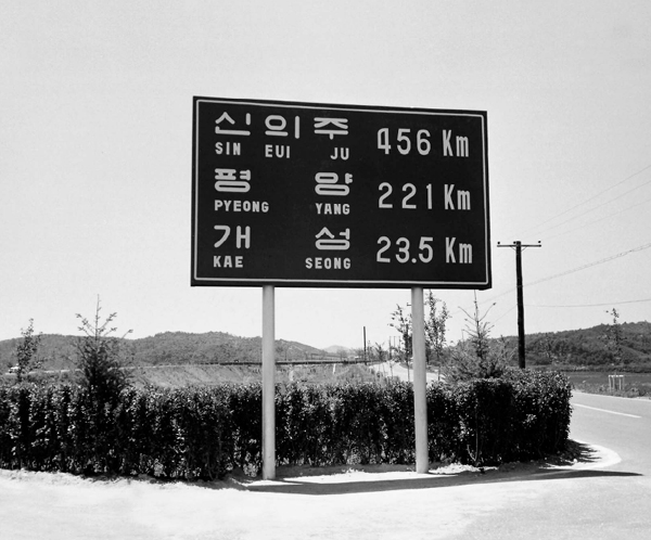 통일로에 세워진 신의주, 평양, 개성방향 이정표