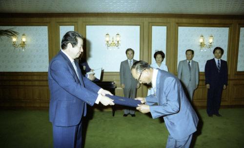 김상협 국무총리 일본 산요 사장 훈장 수여