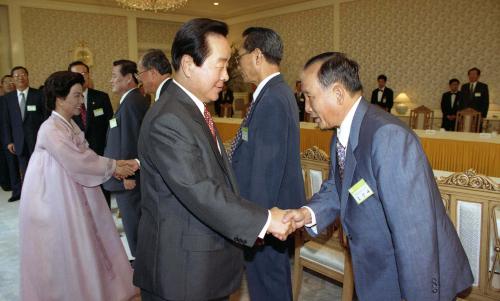 김영삼 대통령 부인 손명순 여사 어깨동무 국토순례단 접견 다과
