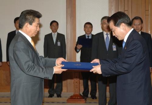 노무현 대통령 김종민 문화관광부 장관 임명장 수여