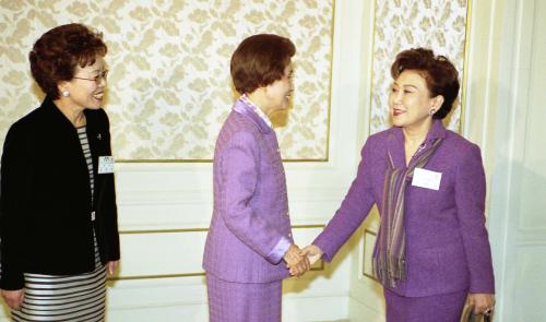 김대중 대통령 부인 이희호 여사 대한여약사회 임원과 다과