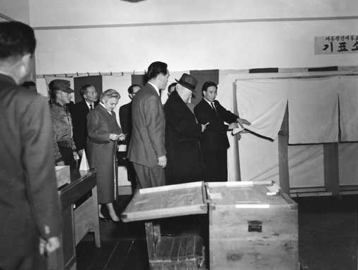 이승만 대통령 내외의 정부통령 선거 투표 광경