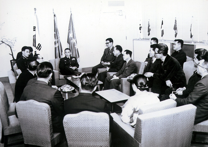 참석자 : 박정희 의장, 예술문화단체총연합회 간부들 인물상세정보 : 박정희 의장(중앙) 예술계를 대표해 예술문화단체총연합회 간부들이 박정희 의장을 예방했다.