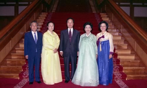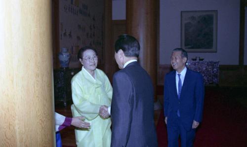 김영삼 대통령 부인 손명순 여사와 공덕귀 여사(고 윤보선 미망인)가 접견하여 기념촬영을 하였다.
