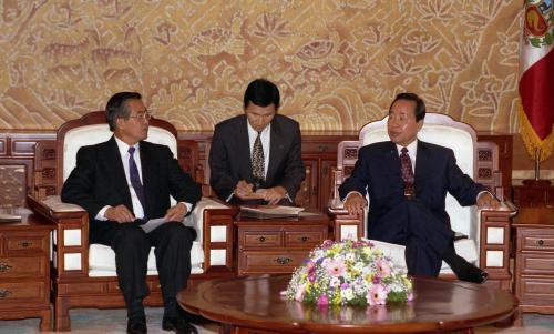 참석자 : 김영삼 대통령, 알베르토 후지모리 페루 대통령 인물상세정보 : 김영삼 대통령(우) 페루 알베르토 후지모리 대통령(좌) 김영삼 대통령이 알베르토 후지모리 페루 대통령과 접견 및 단독회담을 하고 있다.
