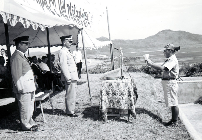 참석자 : 박정희 의장, 제대군인 인물상세정보 : 박정희 의장(좌2) 제대군인 개척농장 입주식에 참석한 박정희 의장.