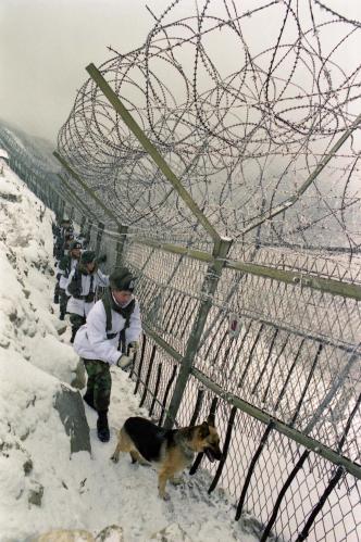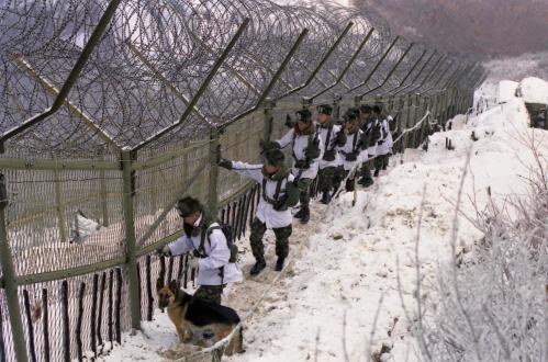 참석자 : 국군 장병들이 휴전선에서 최전방 경계 활동을 하고 있다.