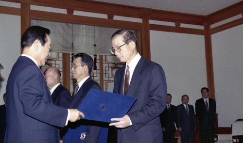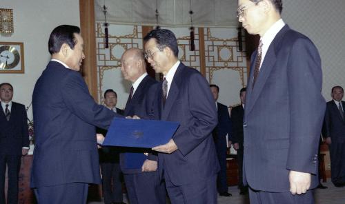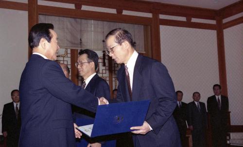 김영삼 대통령이 공노명 외무부 장관, 한승수 청와대비서실장, 유종하 외교안보수석에게 임명장을 수여하였다.