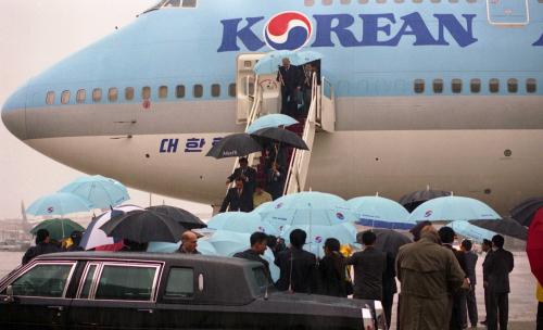 참석자 : 김영삼 대통령, 손명순(김영삼 대통령 부인) 미국 뉴욕을 방문한 김영삼 대통령 내외를 위한 환영 행사가 JFK공항에서 열렸다.
