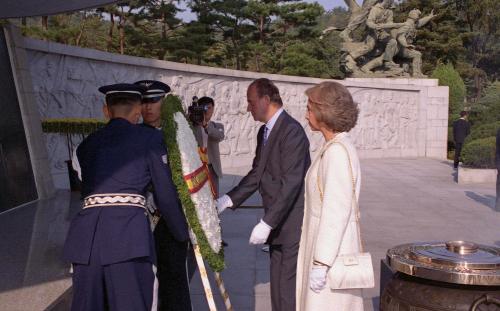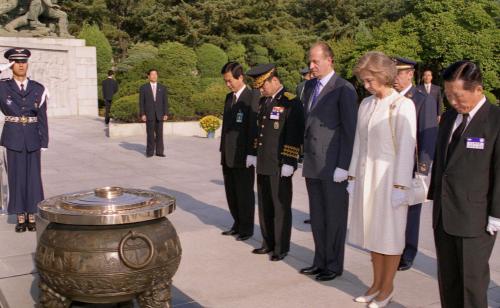 방한중인 스페인의 후안 카를로스 국왕 내외가 동작동 국립묘지를 참배하였다.
