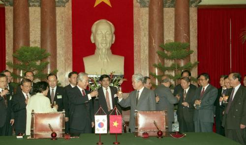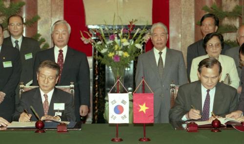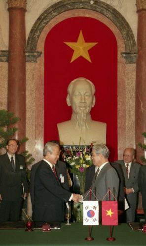 김영삼 대통령이 베트남 하노이의 한ㆍ베트남 정상회담 및 협정 서명식에 참석하였다.