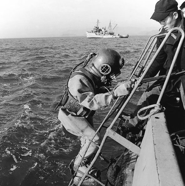참석자 : 미상 침몰한 한일호 선체 인양작업 현장이다.