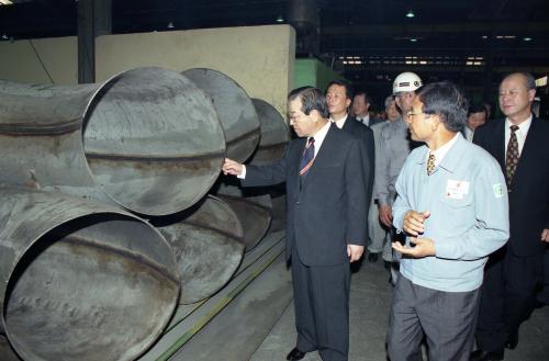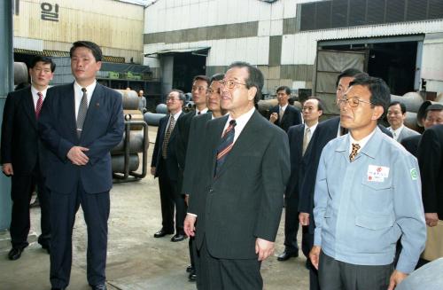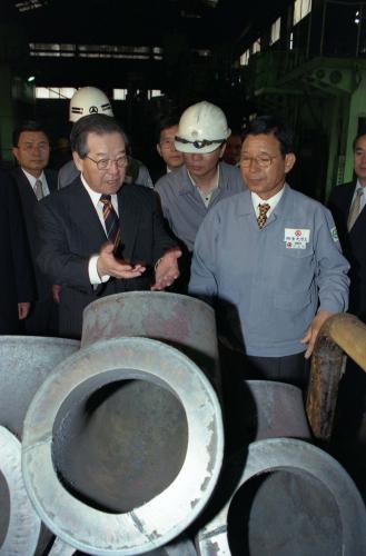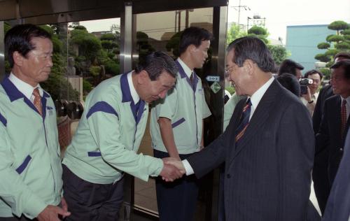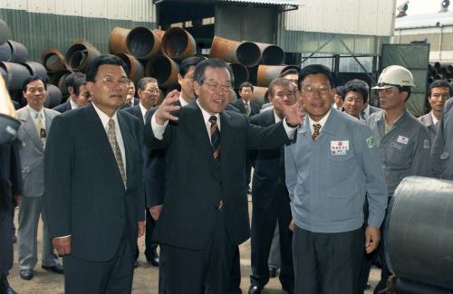 김종필 국무총리가 신평장림공단사무소, 동성화학, 성광밴드 등 부산 중소기업공단을 방문하였다.