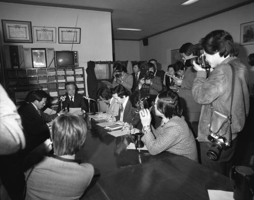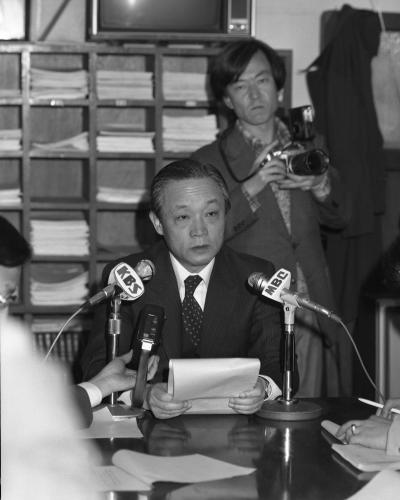 참석자 : 이광표 문화공보부장관 1982년 3월 2일 중앙청 기자실에서 이광표 문화공보부 장관이 전두환 대통령의 12대대통령취임 1주년 기념 특별사면 대상자 명단을 발표하고 있다.