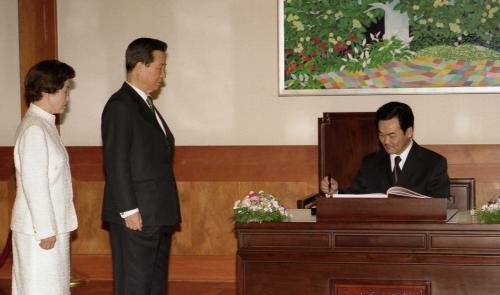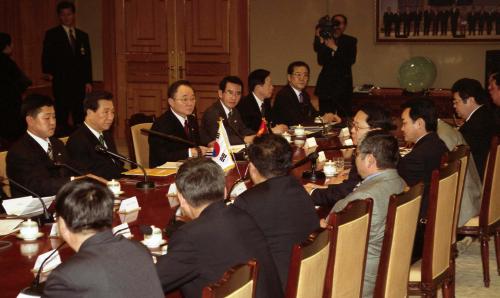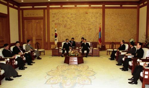 참석자 : 김대중 대통령, 몽골 나차긴 바가반디 대통령 김대중 대통령과 나차긴 바가반디 몽골 대통령이 만나 한ㆍ몽골 정상회담, 확대회담이 열렸다.