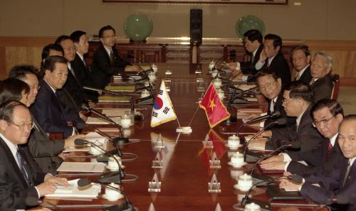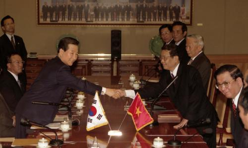 참석자 : 김대중 대통령, 베트남 천득렁 국가주석 인물상세정보 : 김대중 대통령(좌1) 김대중 대통령과 천득렁 국가주석이 청와대에서 만나 한.베트남 정상회담을 가졌다.