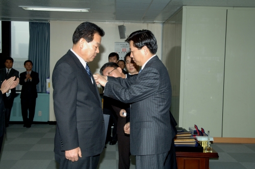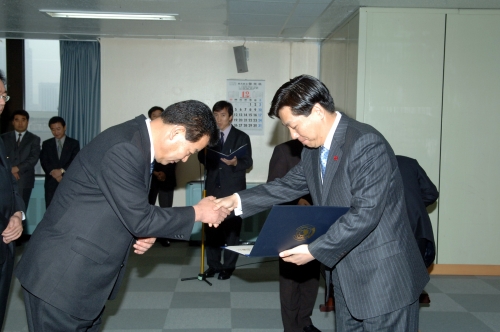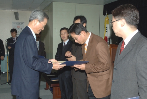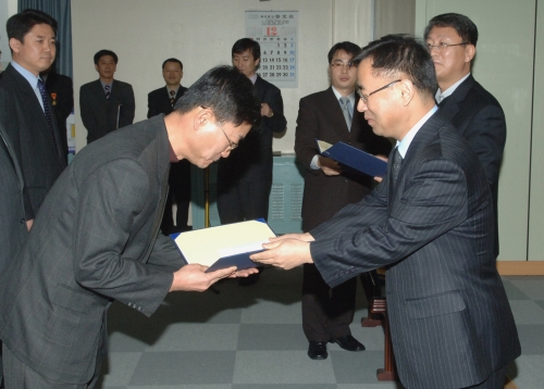 참석자 : 김창호 국정홍보처장 이하 임직원 국정홍보처의 종무식에서 모범 공무원에 대한 포상을 하고 있다.