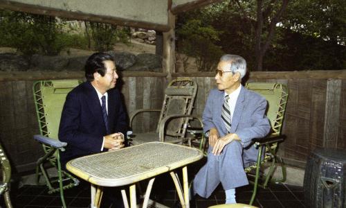 참석자 : 김상협 국무총리서리, 허정 전 내각수반 인물상세정보 : 김상협 국무총리 서리(좌) 허정 전 내각수반(우) 김상협 국무총리서리는 허정 전 내각수반의 신교동 자택을 예방하고 신임인사를 했다.