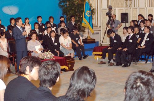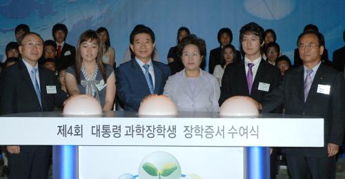 노무현 대통령이 과학장학생들에게 장학증서 및 메달을 수여했다.