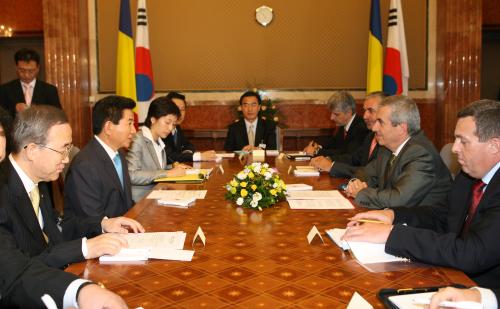참석자 : 노무현 대통령, 포페스쿠 타리체아누 루마니아 총리, 반기문 외교통상부장관
