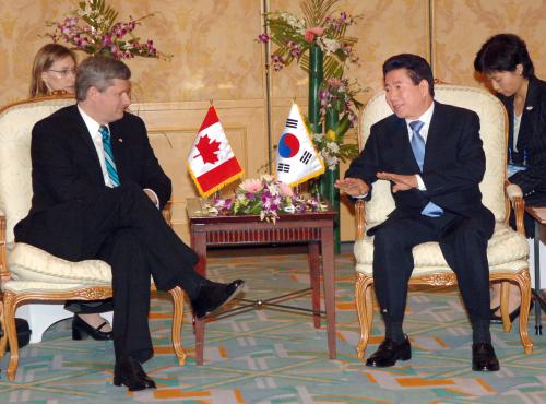 베트남 하노이를 방문 중인 노무현 대통령이 캐나다 스티븐 하퍼 총리를 만나 한.캐나다 정상회담을 가졌다.