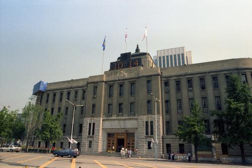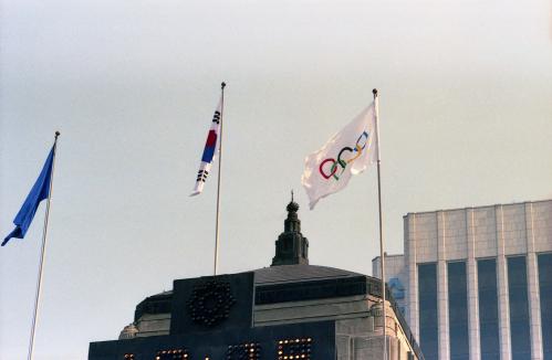 참석자 : 미상 오륜기를 서울시청 옥상에 게양하였다.