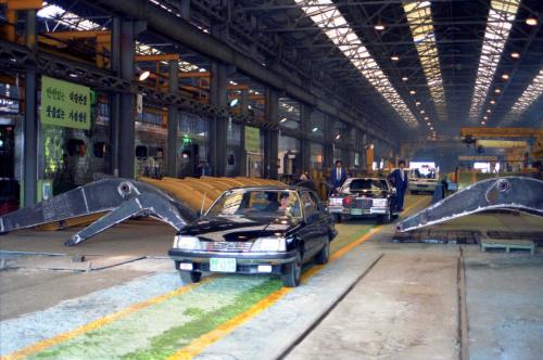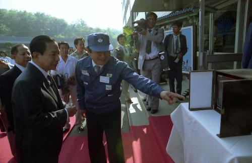 우산유 버마 대통령이 대우중공업 안양공장을 시찰하고 있다.