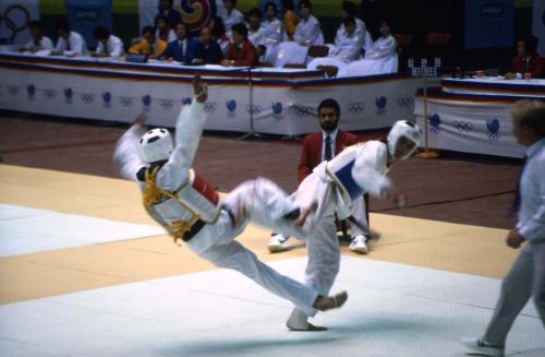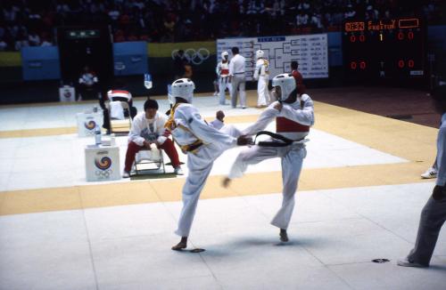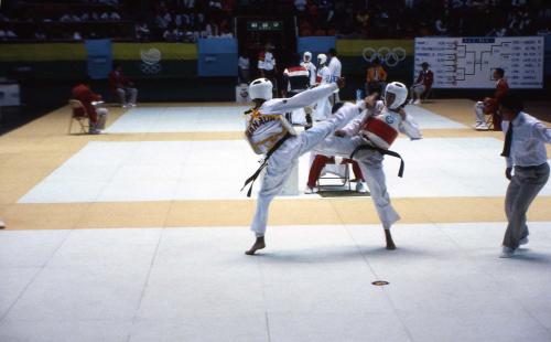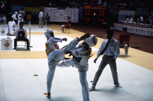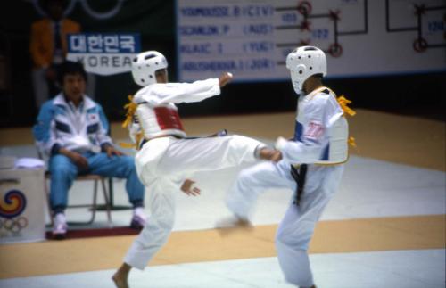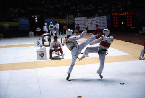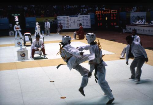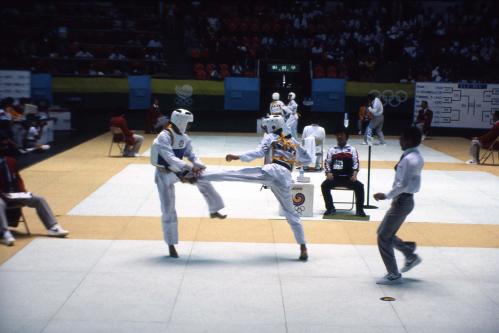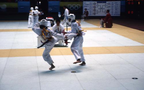 88 서울올림픽대회에서 시범종목인 태권도 경기가 펼쳐졌다. 이 날 경기에서 한국은 플라이급 하태경, 웰터급 정국형, 여자 플라이급 추난률이 각각 금메달을 차지하였다.