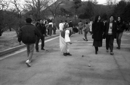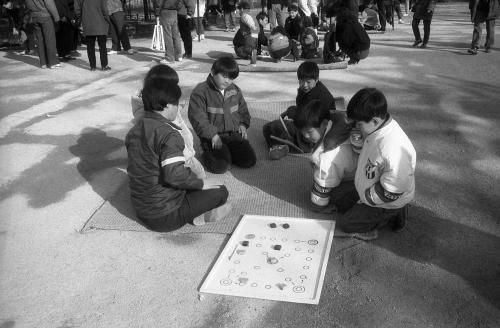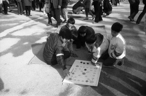 팽이치기 : 한국의 세시풍속으로 팽이를 돌리며 노는 아이들 놀이. 팽이는 축(軸)을 중심으로 둥근 동체가 회전운동을 하는 완구이다. 팽이치기의 시초는 도토리 따위를 돌려서 장난한 놀이 같은데, 이것을 연구하여 발달한 것으로 추측된다. 중국에서는 당(唐)나라 때 성행한 것으로 여겨지며, 이것이 고려를 거쳐 일본으로 전해져, 일본에서는 팽이를 고마[高麗]라고 한다. 세계 여러 나라에서 볼 수 있으며, 종류도 나무 ·대나무 ·금속 ·유리 등이 있고 모양도 다