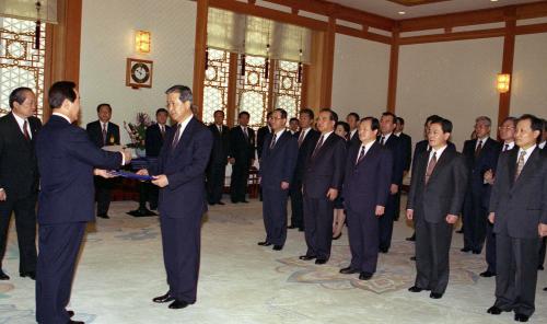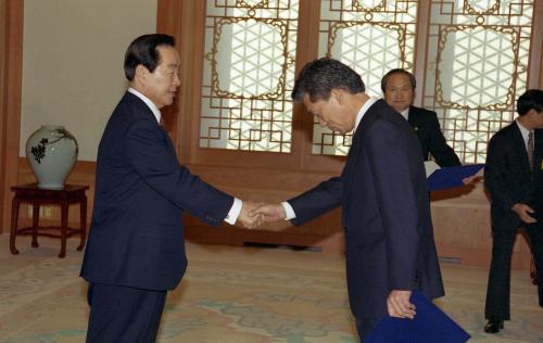 한리헌 경제기획원차관 등 각부처 차관 및 차관급 인사 25명에게 임명장을 수여하였다. 내무차관에 이효계 국무총리비서실장, 국방차관에 정준호 국방대학원교수, 문화체육부차관에 김도현 평통사무차장이 각각 임명됐다. 노동부차관에는 강봉균 기획원대외경제조정실장, 공보처차관에 이경재 전청와대공보수석비서관이 임명됐고 법제처차장에는 박송규 법제처법제조정실장, 국가보훈처차장에는 김시복 청와대정무비서관, 정무2장관보좌관에는 김영순민자당여성국장이 각각 임명됐다. 외청장 가