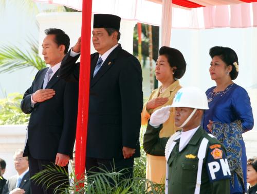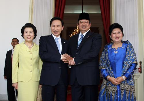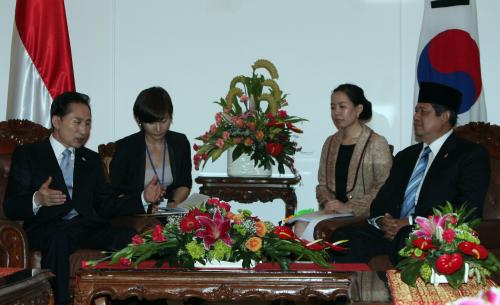 인도네시아를 국빈 방문중인 이명박 대통령과 수실로 밤방 유도요노 인도네시아 대통령은 이날 오후 자카르타에서 정상회담을 열고, 양 정상은 이날 지난 2006년 수립한 양국간 ‘전략적 동반자 관계’를 재확인한 뒤 협력관계 증진방안을 논의했다.