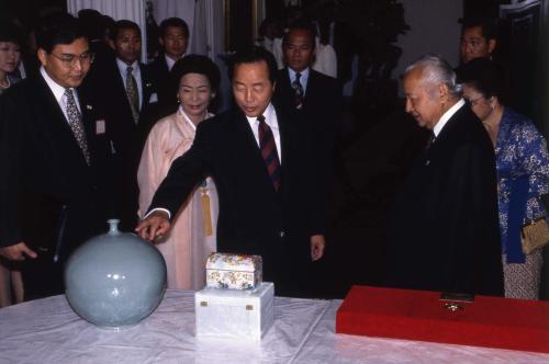 김영삼 대통령은 수하르토 인도네시아 대통령이 베푼 만찬에 참석하여 정상간의 선물을 교환하였다.
