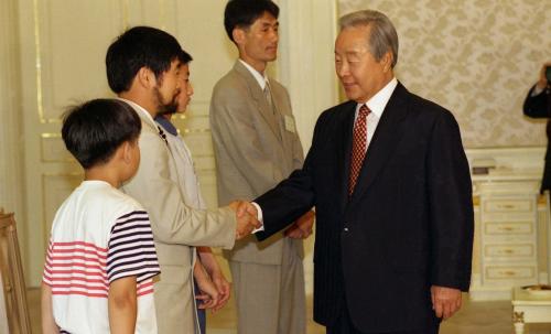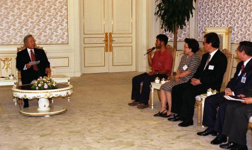 참석자 : 김영삼 대통령, 강동석, 오경분(강동석 어머니), 장재근, 김태웅 인물상세정보 : 김영삼 대통령(좌) 김영삼 대통령은 한국인 최초로 단독 요트 세계일주에 성공한 강동석씨와 어머니 오경분씨를 청와대로 초청하여 『강인한 개척정신과 불굴의 의지는 우리 청소년들에게 귀감이 될 것』이라고 격려했다.