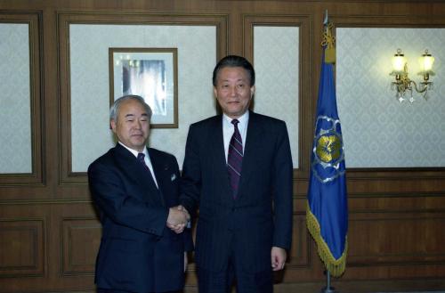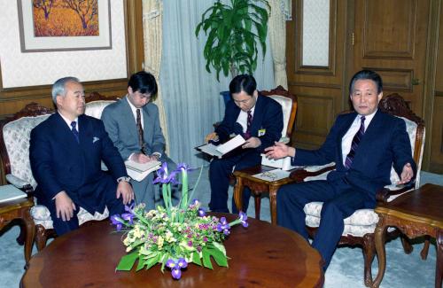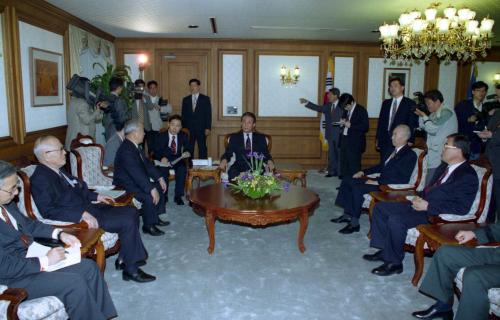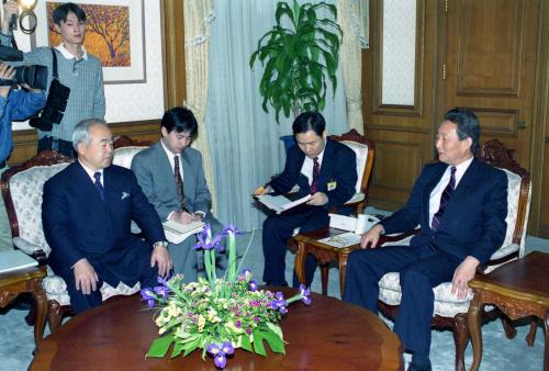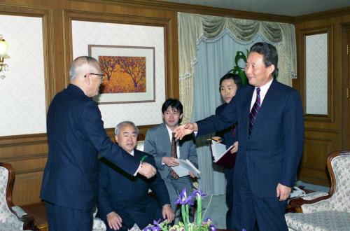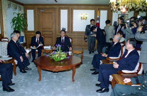 고건 국무총리가 일본 방위청 장관을 접견하고 있다