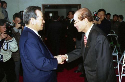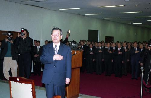 김종필 국무총리 서리 취임식 및 기자실 방문, 신임 국무위원과 기념촬영