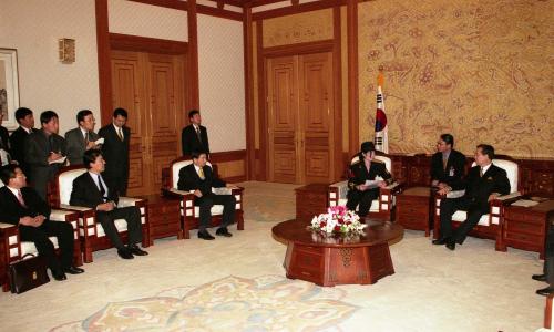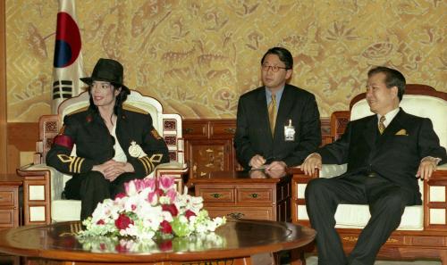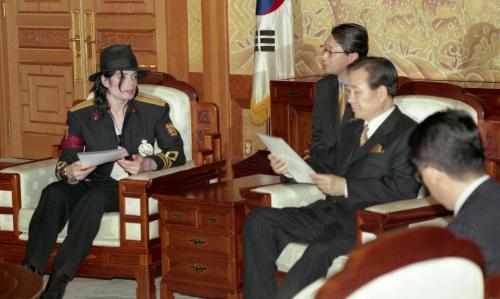 김대중 대통령이 청와대에서 미국의 팝가수 마이클 잭슨을 접견하였다.