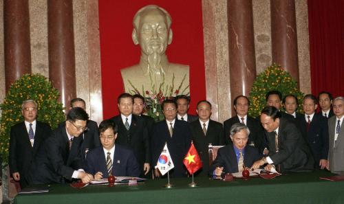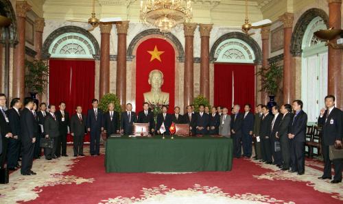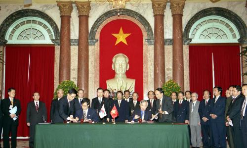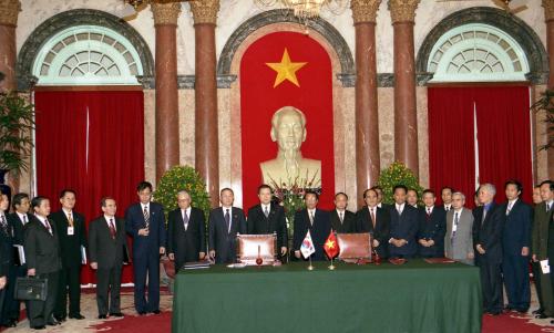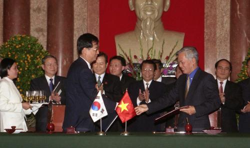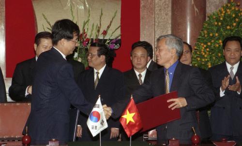 김대중 대통령이 베트남 하노이에서 베트남 쩐득르엉 주석과의 한·베트남 정상회담 및 협정 서명식에 참석하였다.