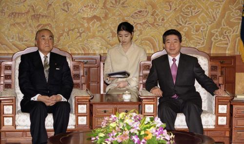 참석자 : 노무현 대통령, 나카소네 야스히로 전 일본 총리 인물상세정보 : 노무현 대통령(우) 나카소네 야스히로 전 일본 총리(좌) 노무현 대통령은 청와대에서 취임식 축하사절로 방한한 나카소네 야스히로(中曾根康弘) 전 일본 총리를 접견했다.