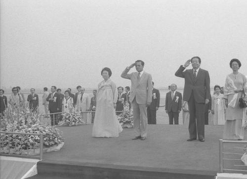 참석자 : 마하딜 빈모하마르 말레이시아 수상 내외, 김상협 국무총리 내외
