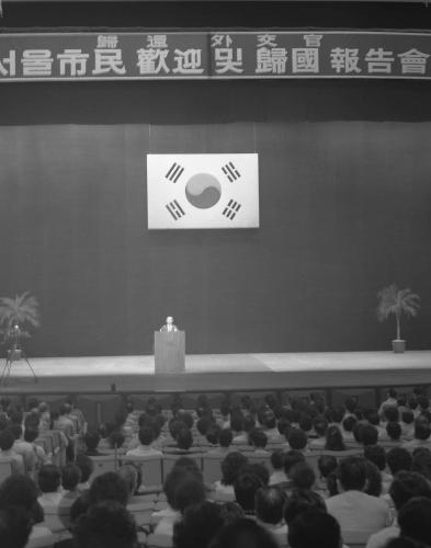 참석자 : 안치완·이대용·허명호 월남귀환 외교관 안치완, 이대용, 허명호 등 월남귀환 외교관에 대한 환영회 및 귀국 보고를 세종문화회관에서 가졌다.