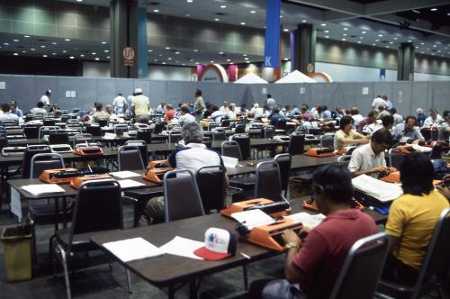 제23회 LA 올림픽 취재를 위해 마련된 프레스센터의 모습이다.
