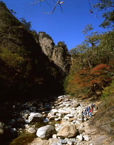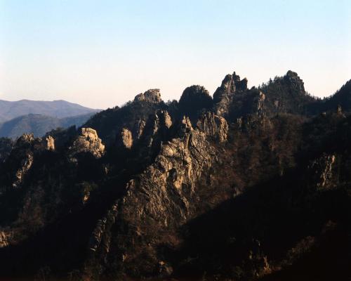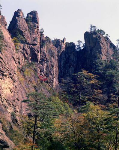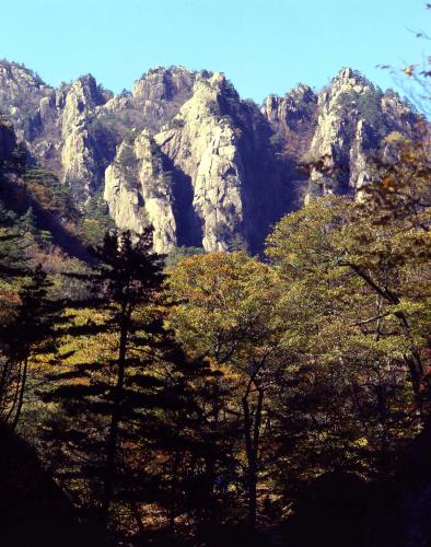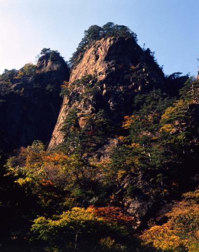 높이 1,708m이다. 신성하고 숭고한 산이라는 뜻에서 예로부터 설산으로 불려진 설악산의 가을단풍 풍경이다.