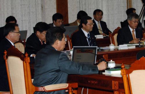 참석자 : 노무현 대통령, 이민원 국가균형발전위원장, 관련 부처 장차관 인물상세정보 : 노무현 대통령(우1) 노무현 대통령이 27일 오후 청와대에서 열린 균형발전정책 1차 보고회를 주재하고 있다.
