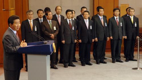 참석자 : 노무현 대통령, 문재인 대통령비서실 실장, 정부인사, 기자단