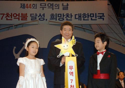 산업자원부는 30일 한국무역협회 주관으로 서울 삼성동 코엑스 오디토리움에서 제44회 무역의 날 기념식을 가졌다. 노무현 대통령과 김영주 산업자원부장관, 이희범 무역협회장 등 천 백여명이 참석한 가운데 열린 오늘 기념식에서 삼성전자가 450억불 수출탑을 받는 등 93개사가 1억불 수출탑 이상을 받았다.