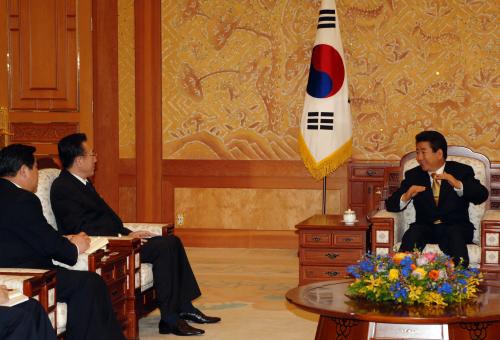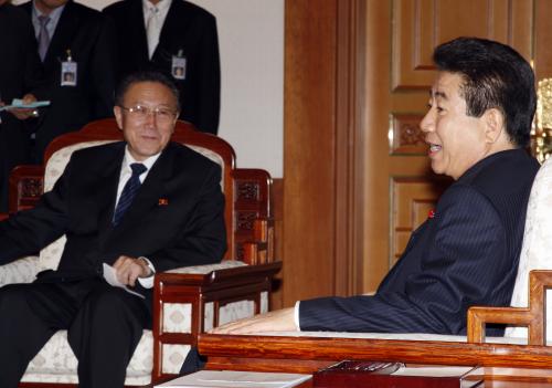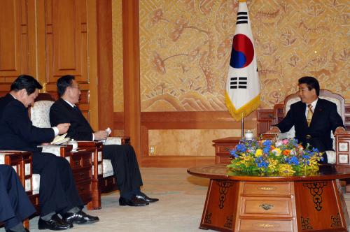 노무현 대통령이 방한한 김양건 북한 통일전선부 부장을 청와대에서 접견하고 간담회를 가졌다.