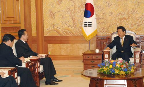 참석자 : 노무현 대통령, 김양건 북한 통일전선부 부장