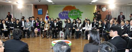 참석자 : 이명박 대통령.보건복지부 장관 이명박 대통령과 김황식 총리가 23일 오전 서울 종로구 계동 현대빌딩 청사에서 임채민 장관의 2012년 보건복지부 업무보고를 받고 있다.