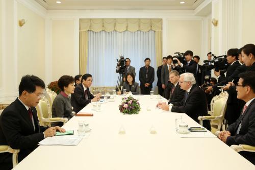 참석자 : 박근혜 대통령 .피터 보저 회장 박근혜 대통령이 15일 청와대에서 피터 보저 로얄 더치 쉘 회장을 접견하고 있다.