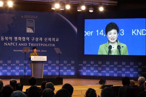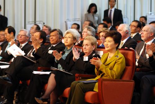 참석자 : 박근혜 대통령, 윤병세 외교장관, 하영선 동아시아연구원 이사장, 윤덕민 국립외교원장, 마들렌 올브라이트 전 미 국무장관 등